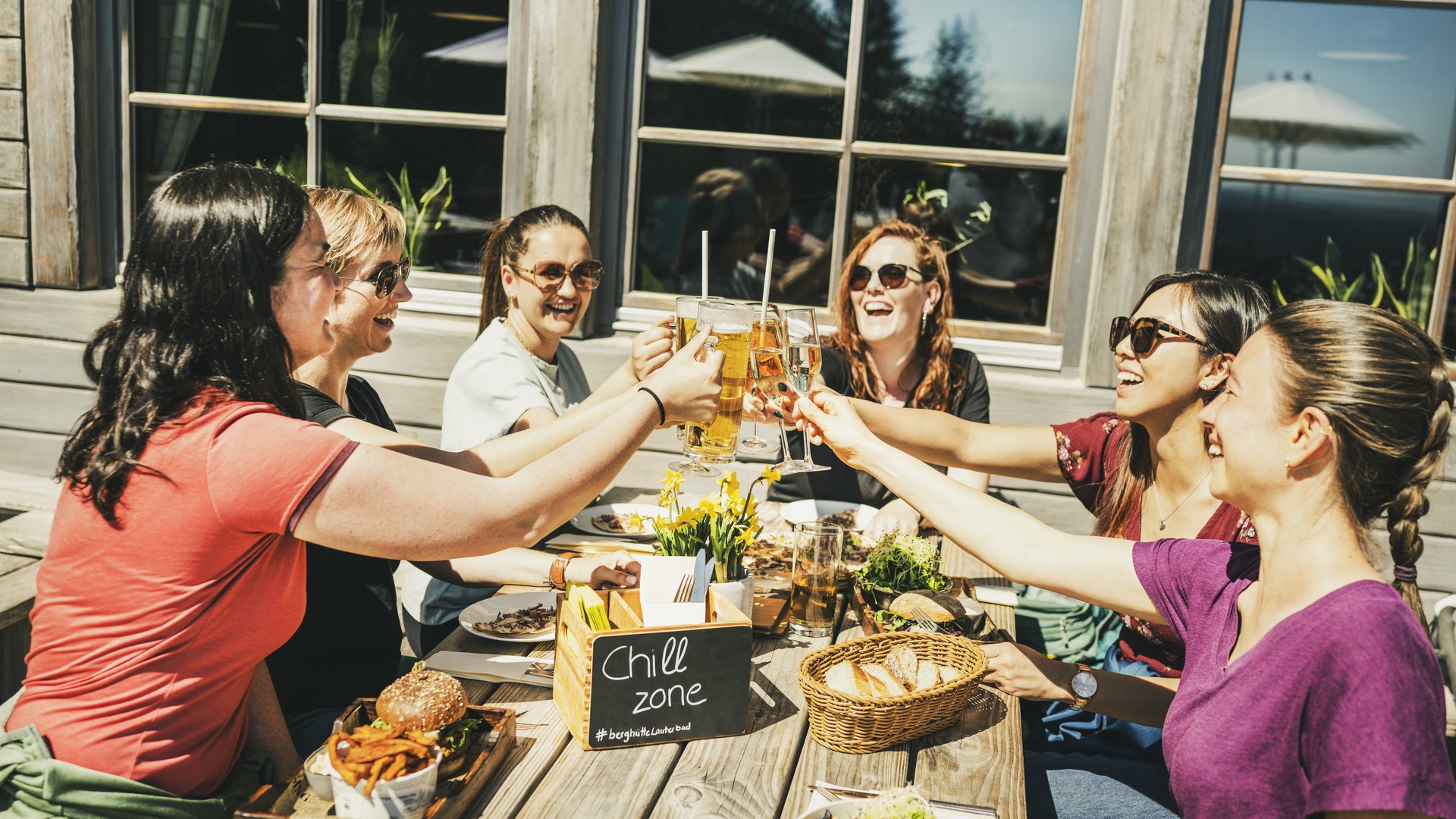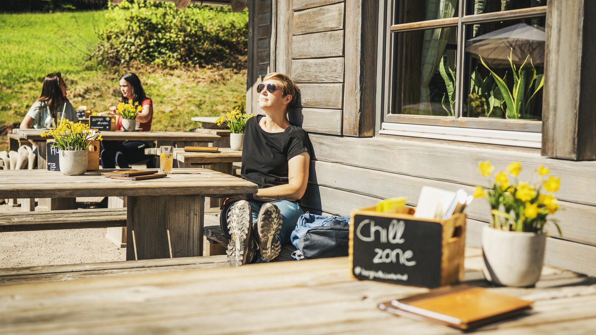 Auf unserer Sonnenterrasse findet ihr genügend Platz zum Schlemmen, Erholen und Lachen!